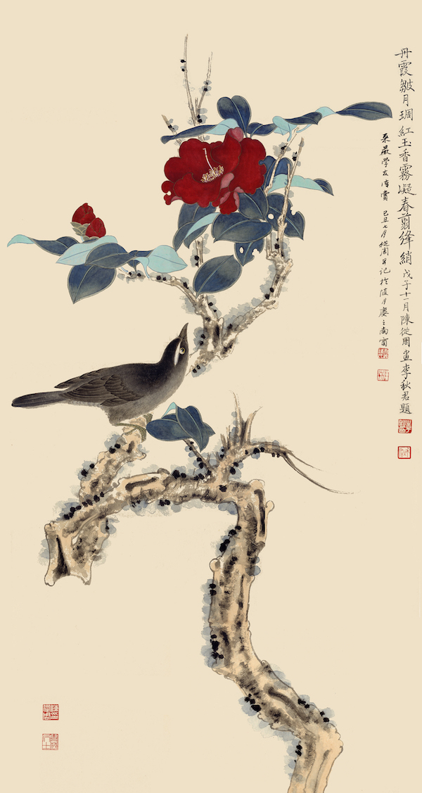 1946年,经金石家方介堪先生引荐,陈从周在画家李秋君画阁(卡德路,今石门一路)拜张大千先生为师, 两年后(1948年),陈从周在上海永安公司举办了第一次个人画展,张大千题“门人陈从周画展”,陈从周也以“一丝柳,一寸柔情”的花鸟画,蜚声沪上。书画丹青也成为与陈从周相伴一生的爱好。1980年,张大千曾经的画师网师园殿春簃的景致复制到纽约大都会艺术博物馆,这个经过陈从周反复斟酌后确定的方案在在把中国园林艺术带到世界的同时,也表达了对老师张大千的敬意。