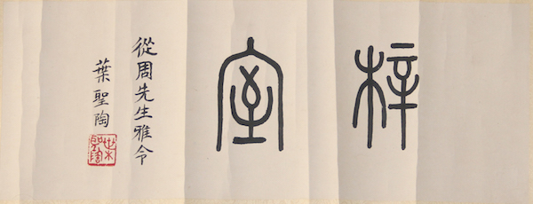 除张大千外,王蘧常(陈从周岳父的表弟)也是陈从周的恩师,按陈从周《随宜集》中自述:“自大学时代起,就一直没有中断过师生情谊。”此次展出了王蘧常为陈从周所拟对联“开源同经济,叠石见经纶”。