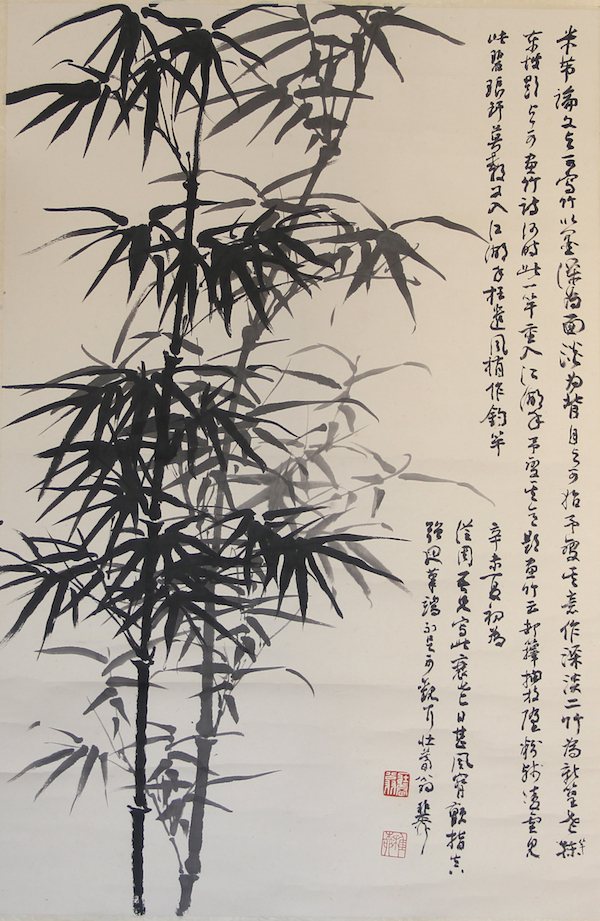1991年,81岁高龄的谢稚柳画墨竹赠陈从周