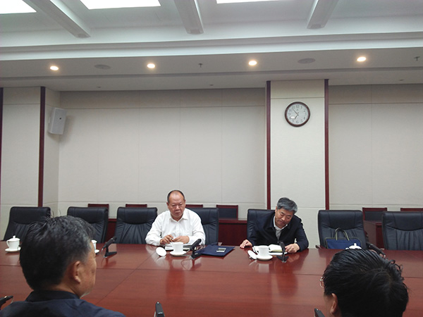 约谈现场,天津市林业局党委书记、局长 张宗启(右)、 天津市森林公安局局长 高鹏远(左)接受约谈。 澎湃新闻实习生 王安琪 摄