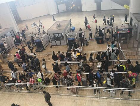 为提升旅客安检进站效率,南站针对进站旅客较为密集的北地下和西落客安检区域,在客流高峰时段设置“急客通道”,为距开车时间在15分钟以内的旅客提供快速安检进站服务。延长地下换乘层快速进站厅开放时间,开启时间调整早7:00,关闭时间根据客流情况适时延长。