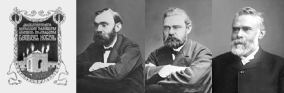 诺贝尔兄弟石油公司的标志及兄弟三人(从左至右依次为阿尔弗雷德、罗伯特和卢德维希希)| AZER.com
