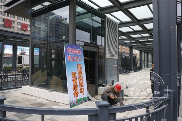 记者注意到,换乘中心门前仍摆放着提示牌,工人们仍在现场进行施工。