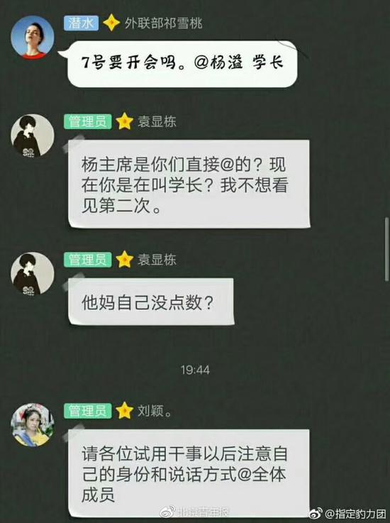 原标题:“杨主席是你们直接@的?” 成都一学院学生社团被指“官威太大”