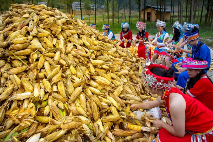 2018-09-19,湖北省恩施州。金灿灿的玉米堆成小山,又是丰收的一年!作者:六哥