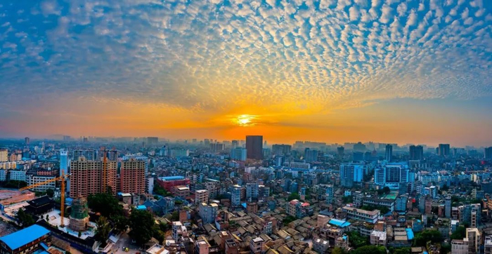 2018-10-01,广西玉林。日出中的玉林全景。作者:驴侠客