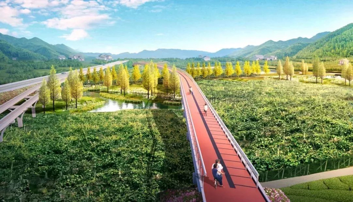 花香橘园、栈桥桃园、太阳花海 桃园驿站、幽湾茶林、茶果飘香 串联历史文化节点 它不仅串联起邛崃乡村沿线历史文化