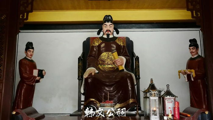 韩愈曾因触怒皇帝,被贬到潮州,在潮州待了七个多月,他办教育,驱鳄鱼,做了不少好事,潮州人为纪念他,在宋代就建起韩文公祠。苏轼为此写下了的《潮州韩文公庙碑记》,称韩愈“文起八代之衰,道济天下之溺。”