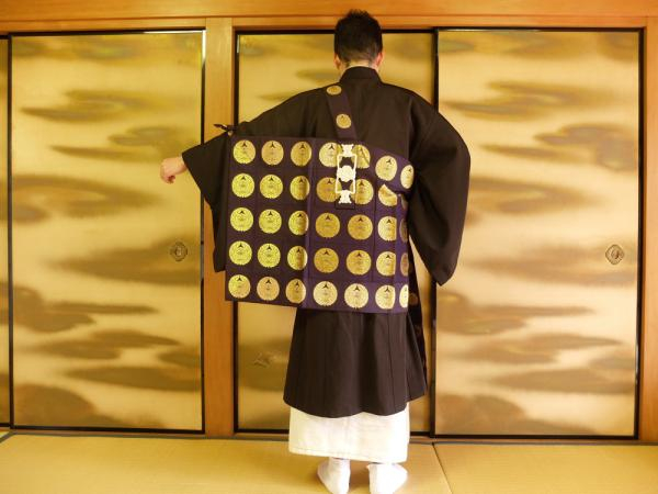 挂在脖子上、搭在西服外的日式袈裟