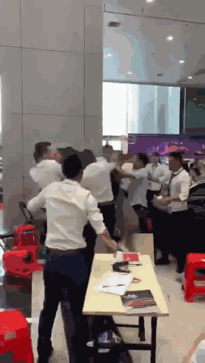 网络上的说法是,事发于中山某4S店,被打的两人是情侣,他们为了拍抖音去4S店用麻将牌买车,被店里的销售群殴。