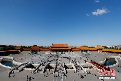 10月1日,在北京故宫博物院参观的游客秩序井然。中新社记者 杜洋 摄