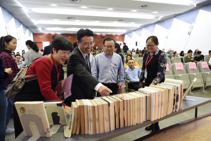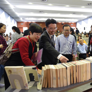 活动最后,图书馆将“四川大学馆藏精品集萃丛书”中《由精逮博,积知为用——名师听名家课堂笔记》一书赠与曹顺庆教授。该书收录了杨明照先生的课堂笔记。曹顺庆教授在《中西比较诗学》和《中外比较文论史》两部专著上签名,图书馆将其作为“青春之我·真人书屋”系列馆藏的首讲作品珍藏。