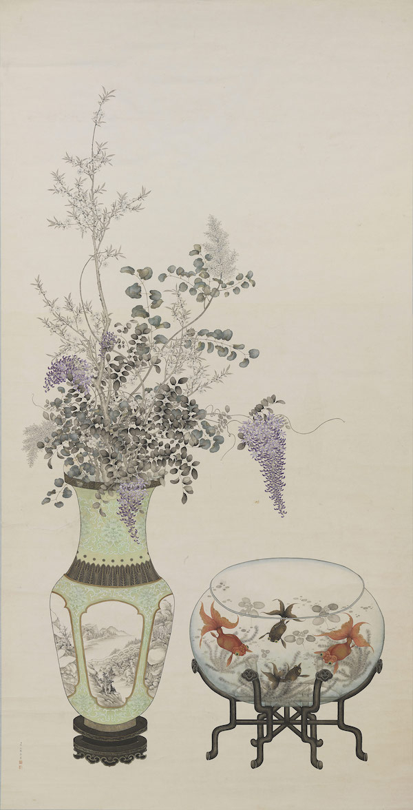 栽培有画意的盆景,或插出有韵致的瓶花,皆是陶冶性情之雅事。所谓“一花一世界,一叶一如来。”画家笔下的瓶花、盆景作品,反映其观察力与美感创意,以及传统民俗丰富的象徵意涵。