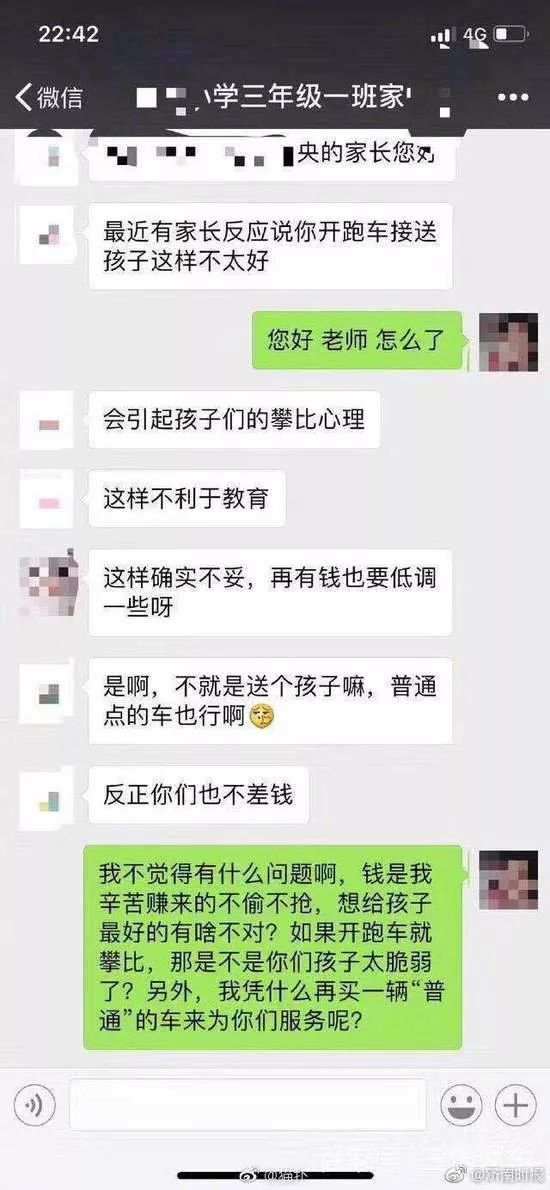 原标题:家长开跑车接送孩子被老师移出群!网友的反应竟然是……