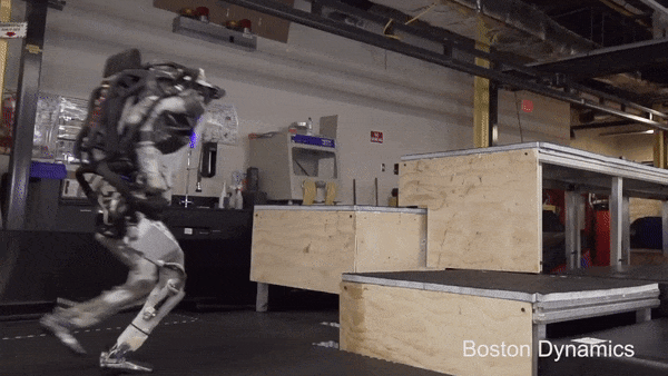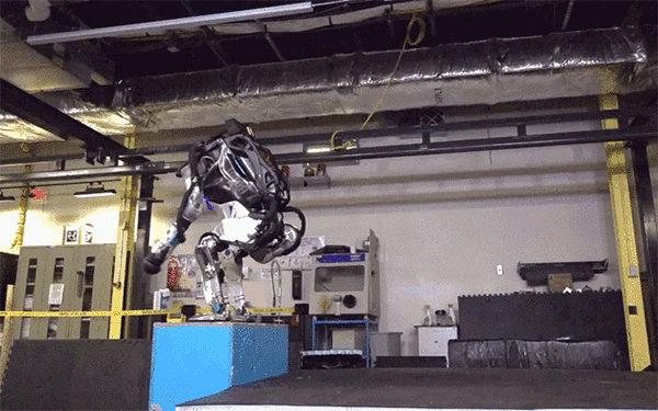 2017年年底,波士顿动力公司又一次刷新了公众对于机器人的认知。视频中,Atlas展示了并拢双腿上下跳跃盒子的本领。它还来了一个标准的后空翻,平稳落地后向上摆臂以保持平衡。