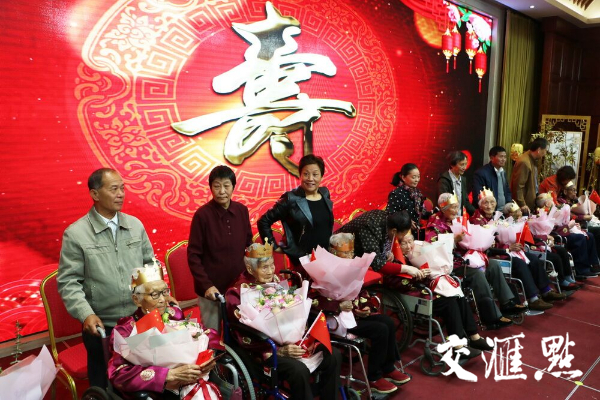 扬州欢庆重阳摆出“千岁宴” 10位百岁寿星和50位八旬以上老人赴宴