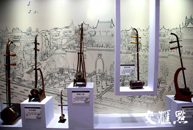 走进上海新国际展览中心,E7展馆内超过200平方米的“中国二胡之乡——无锡梅村”展区格外引人注目。雪白的墙壁配着人字形的屋顶,冰裂纹样的窗棂加上灰色的屋檐,江南民居风格的布局和清新素雅的色彩让它别有韵味,“古月琴坊”“广国二胡”“林生乐器”“金波二胡”等招牌在屋檐下一字排开,一目了然。走近了看,5把产于上世纪六十年代的梅村乐器厂的二胡样式传奇,穿透历史沧桑的魅力就油然而生。