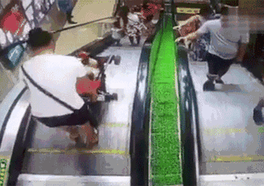 2017年,9月16号,广东深圳,一名11岁左右的男孩,骑着单车乘坐自动扶梯时,不慎摔下,连人带车滚下扶梯。据家长介绍,男孩受的伤不轻,颈上裂十余公分,下巴缝6针。