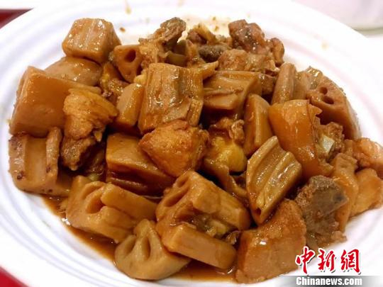 “在台山传统的婚嫁喜宴中,莲藕焖猪手是最常见的。听老一辈人讲,这道菜有佳偶天成的好意头”台山四九镇的李娇仪女士介绍,“逢年过节,我妈煮肴也喜欢用莲藕焖猪手。猪手要先炒白锅(不放油直接生炒),再用八角、沙姜、南乳、豉油、蚝油等配料加水和削皮、切块的莲藕一起焖熟,让莲藕在焖煮的过程中充分吸收猪手的肉香和酱料的浓香,这样吃起来才够入味”。除了莲藕焖猪手这道菜之外,当地宴席中的传统大杂烩菜式“炒八珍”也会用到藕片。