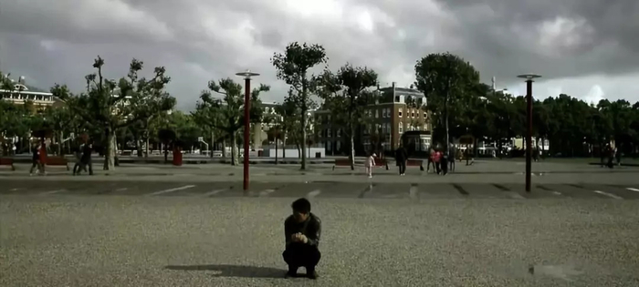 从博物馆出来,他蹲在广场上,心情复杂。