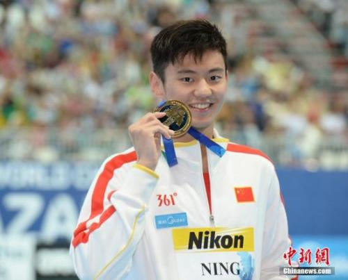 第16届国际泳联世锦赛游泳男子100米自由泳决赛,中国选手宁泽涛夺得冠军,创造历史。中新社发 侯宇 摄