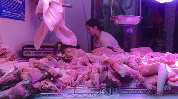 对面是一家肉店,每逢买肉的人骑着电动车经过,老板直接就可以把切好的肉装好扔在车筐里,扫码支付,电动车便启动,在巷中骑远。