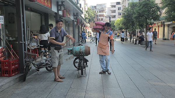 “记录中国”报道团队在早上8时许钟走进石牌村。此时正是广州上班高峰。上班族们从城中区走出来。他们穿戴齐整、衣冠济济,每个人脸上都透露着匆忙,顾不上留恋朝阳,一步赶着一步、向着无数栋办公大楼里的工位。