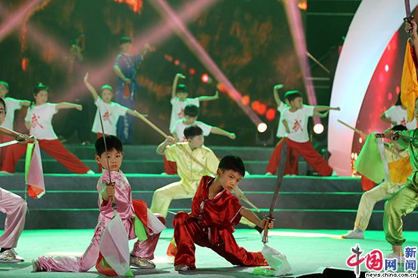 扬州世明双语学校小学部表演的武术操《尚武世明》。