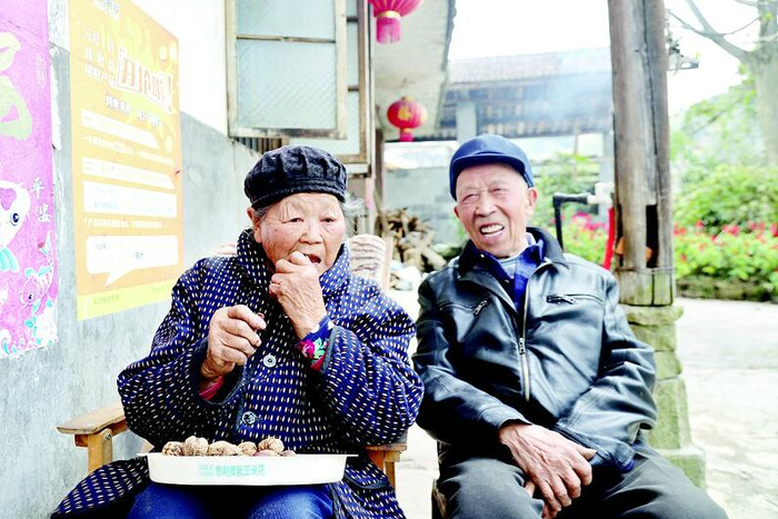 “我每天三餐饭,最喜欢读书看报,自己种了菜还养了点鱼。”涂爹爹声音洪亮,邱婆婆笑着看他,不时咬开一个板栗递过去。说起长寿秘诀,两位老人指了指外面的大山和茂盛的树林,诙谐地说了句顺口溜:不喝酒不抽烟,麻将桌子不沾边。