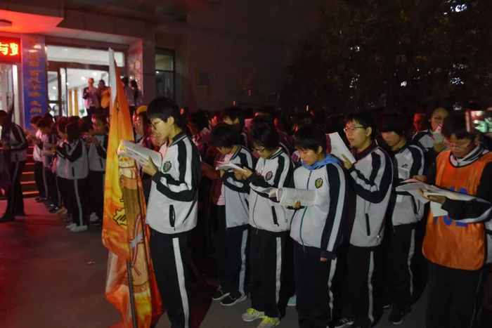 早上五点五十,记者来到衡中校园,学生们已经集合完毕,迎着晨曦进行操前晨读。