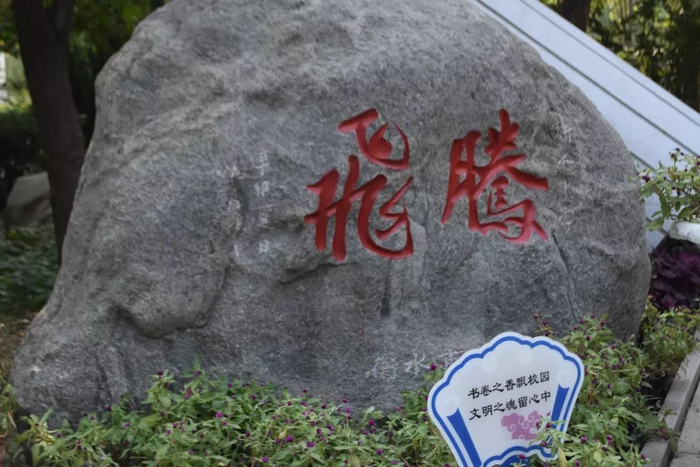 学校文化石上都刻着字,代表着学校对学生的美好愿景。