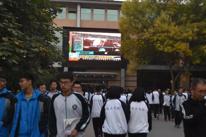 衡中教学楼前的LED屏,滚动播放着弟子规。