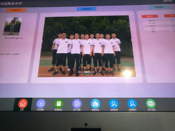 主页上,班级信息,班级风采,班级量化一目了然, 学生也可以通过输入学号查询成绩。