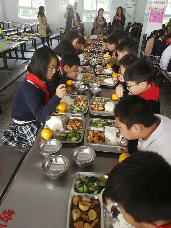 姜堰东桥小学的孩子们在学校食堂吃放心餐。
