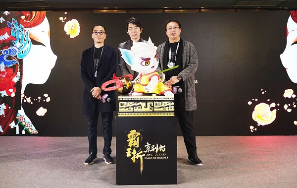 从左至右:《京剧猫:霸王折》导演许刚、璀璨星空创始人兼CEO杜刚阳、 《京剧猫:霸王折》制片人景瑞波