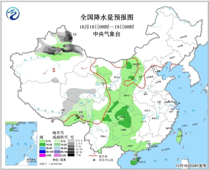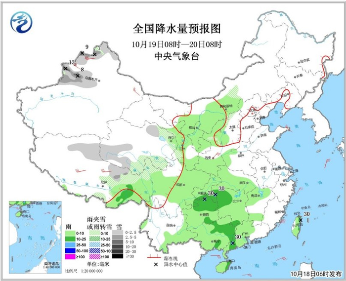 昨日,在我国新疆地区,冷空气携雨雪降温如约而至。气象监测显示,过去一天伊犁、博尔塔拉、乌鲁木齐等地出现降雪或雨夹雪,部分观测站点降雪量级达到暴雪级别(超过10毫米);与此同时,新疆西部和北部气温下降剧烈,18日清晨,沿天山一带气温低至冰点以下,多地迎来今年下半年以来的气温新低。