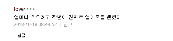 网友:去年我真差点被冻死。