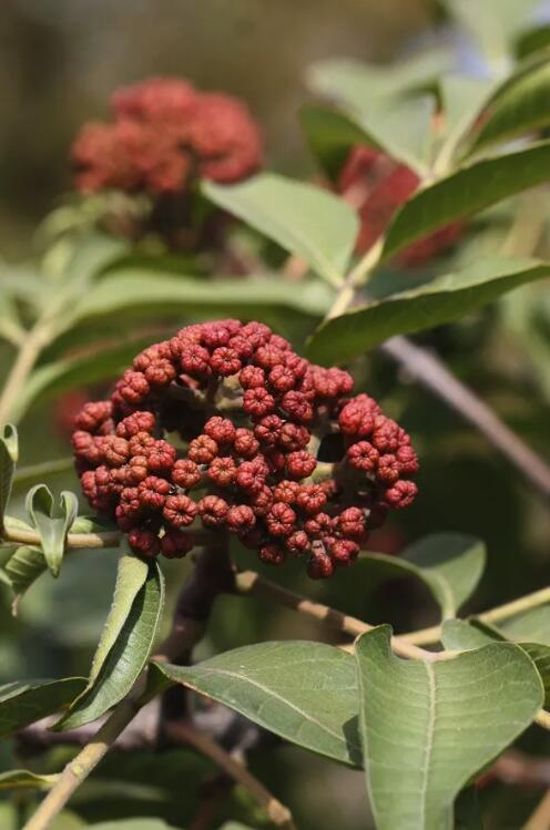 知道现在说的茱萸通常指这三种:山茱萸、吴茱萸,这两个都是正式名;还有一种食茱萸,正名叫椿叶花椒。吴茱萸和食茱萸都是芸香亚科,吴茱萸是吴茱萸属,椿叶花椒是花椒属,隔得不太远。