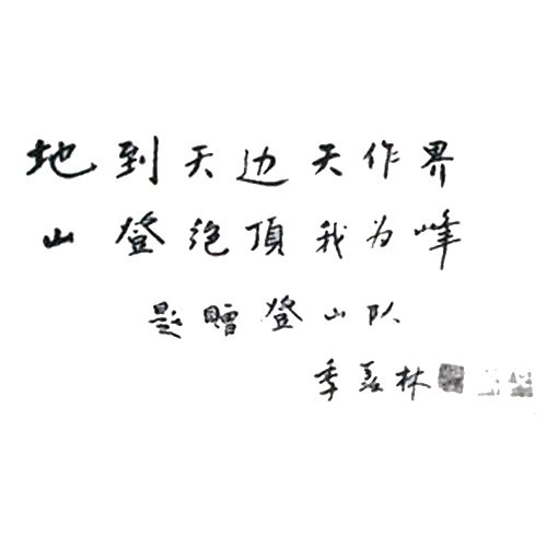 1998年,季羡林先生为北京大学登山队登顶卓奥友峰题词 存鹰之心于高远