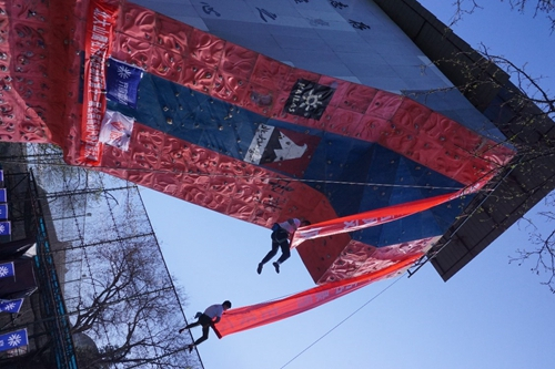 2018年第11届全国高校户外技能大赛开幕式爬南壁表演