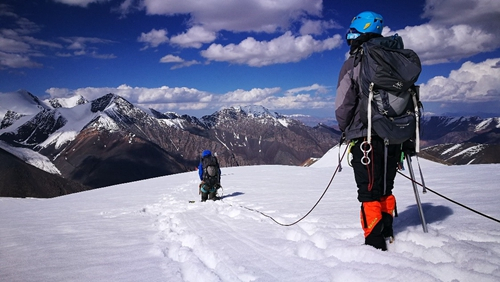 2017年,团结峰登山队在青海团结峰结组前进