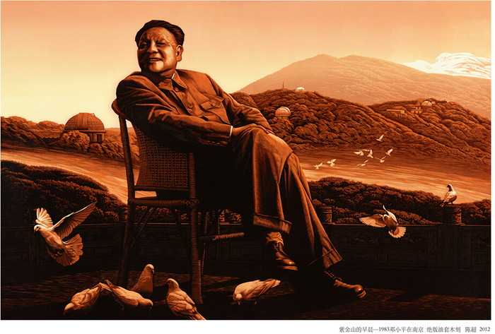 从78年入伍至今,40年不仅我的生活变了,整个国家和时代更是发生了翻天覆地的变化。我一直坚持走现实主义美术创作道路,在我的在作品里始终充满着对历史文化、时代变迁和人文情怀的关注和思考。你看这幅《每逢集》是我1989年在全国第十届版画展获铜奖的作品,也是我首次获奖。这幅作品所表现的是80年代的改革开放初期回族乡村的集贸市场,画中所看是一个非常兴旺的集市景象和独具的风土人情。画中的电冰箱、自行车、电视机等这些今天家庭的常用品,在当时可是紧俏品,乡村集市上出现这样现代的生活用品,可谓时代发展的真实写照。这幅作品纪录了历史,也展现了时代。《山丹丹》是我的代表作之一,从生活体验到创作构思,再到作品问世,经历了长达20年过程,此作被中国美术馆收藏,更被许多藏家争相收藏。这幅作品是从我的一次经历中萌生的。上世纪80年代我去宁夏山区写生,傍晚一行投宿到老乡家里,所住山村四合院里只有一个20多岁的少妇带着一个三岁大的女孩,闲聊才得知女人的丈夫婚后三天就去修公路意外伤亡……第二天大家走时,她居然穿上出嫁时的大红袄,站在高坡上,一手拉着小女儿,一手远远的向我们远去的身影招手,从此这一幕永远印在了我的记忆中,于是便有了《山丹丹》画面里端坐在苍茫的黄土高坡上,一个盖着红盖头的新娘的形象。此作是对黄土大地上女性的颂歌,也是对人间悲欢离合的哀唱。《喜娃》是2012年我去西北采风的作品,从憨厚又有些调皮放羊小伙戴的山寨的Y-3“名牌“帽子上,便跟这个时代应合了;《寒露》是我自身的思考与写照,我甘愿沉浸在独自的艺术空间和远离喧嚣的环境去思考,去创作,去享受因孤静而带来的快乐和人生,有朋友为我撰文题为“一种飞翔叫孤独”真是入木三分。2012年江苏省组织重大历史题材创作,我以当年邓小平到南京上钟山为题材创作了《紫金山的早晨——1983年邓小平在南京》。这幅画我在以历史为据的前题下,塑造和体现邓小平作为中国改革开放总设计师的光辉形象。