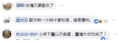 “差不多要断交了。”有台湾网友哀叹道。