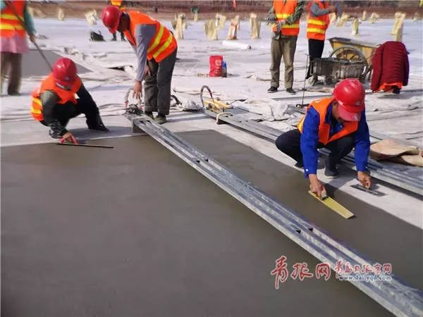 △施工人员在贯通处磨平跑道。傅学军/摄