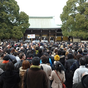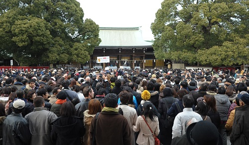 资料图片:2012年1月1日,在日本东京明治神宫,人们进行新年的第一次参拜。新华社发