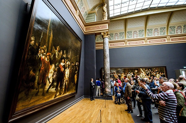 人们在阿姆斯特丹国立博物馆驻足欣赏《夜巡》©Tim Graham/Getty Images