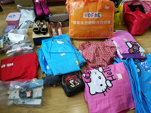 9月29日,办案民警赶赴阜宁,在熊某家中查获了大量的从淘宝上购买的化妆品、衣服、床上四件套等物品。