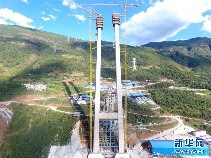 金安金沙江大桥就属于华丽高速公路的“卡脖子”控制性工程,是目前世界上在建最大跨径的山区峡谷钢桁梁悬索桥,此次封顶的主塔塔高228米(含塔冠),为钢筋混凝土门式框架结构,塔顶距金沙江江面垂直高度479米,接近160层楼的高度。