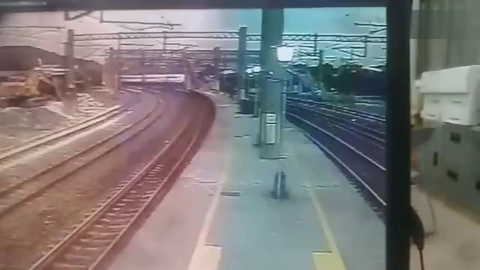 台湾列车脱轨瞬间监控曝光,月台铁架瞬间倒地!