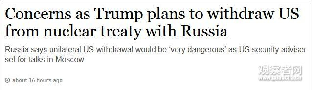 [文/观察者网 徐乾昂]上周末(20日),美国突然宣布退出《中导条约》的决定震惊世界。
